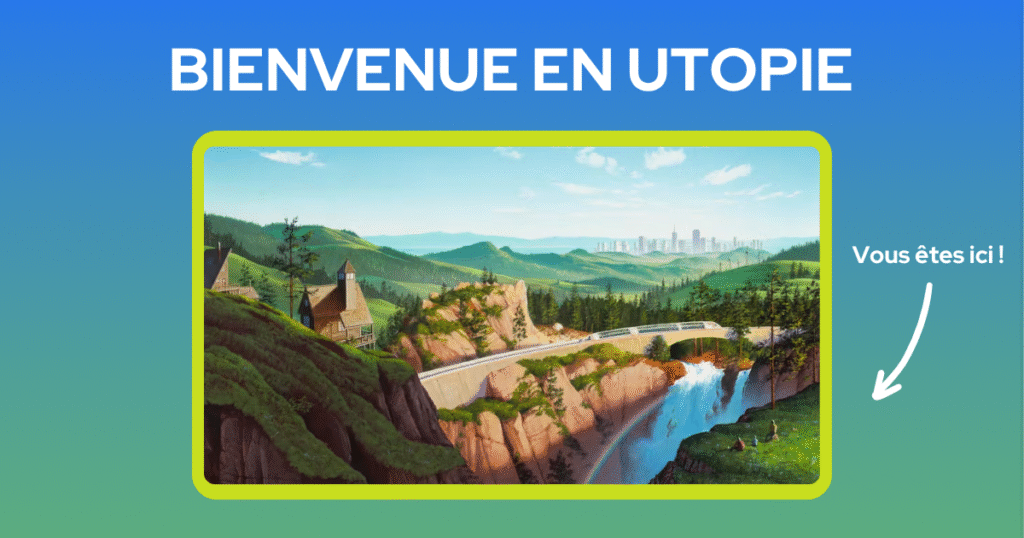 Pour commencer, l’utopie a un grand pouvoir de transformation de nos imaginaires. Nos cerveaux ont cette triste faculté de s’émouvoir davantage dans des récits choquants, catastrophistes. Ou comme le mentionnait Baudelaire “ La beauté dans le Mal ”. On serait plus naturellement attirés par des histoires noires et des images violentes que par des récits positifs. Ce qui expliquerait le grand succès des dystopies dans les divertissements et la difficulté des utopies à émerger sur les plateformes de grandes écoutes. Ça vend moins, ça fait moins envie. Malheureusement, cette dynamique affecte notre vision de l’avenir et peut nous paralyser dans un présent qui ne nous satisfait pas. C’est là que l’utopie entre en jeu. Cet outil de prospective permet de dérouiller nos imaginaires et de nous projeter vers un futur désirable. Cette projection narrative peut avoir une incidence forte sur la réalité et nous rendre notre capacité d’action dans le présent afin d’orienter le futur vers le mieux.